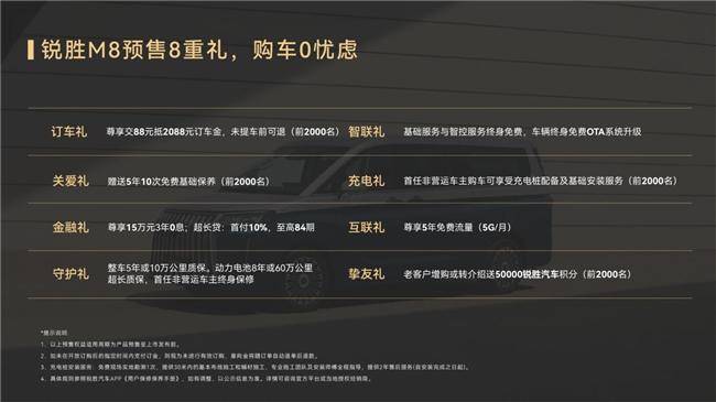 结语:通过对锐胜M8全生命周期的成本分析,可以预见,锐胜M8凭借着它的越级价值体现,成为那些兼顾家庭与事业的奋斗者们的优质选择。